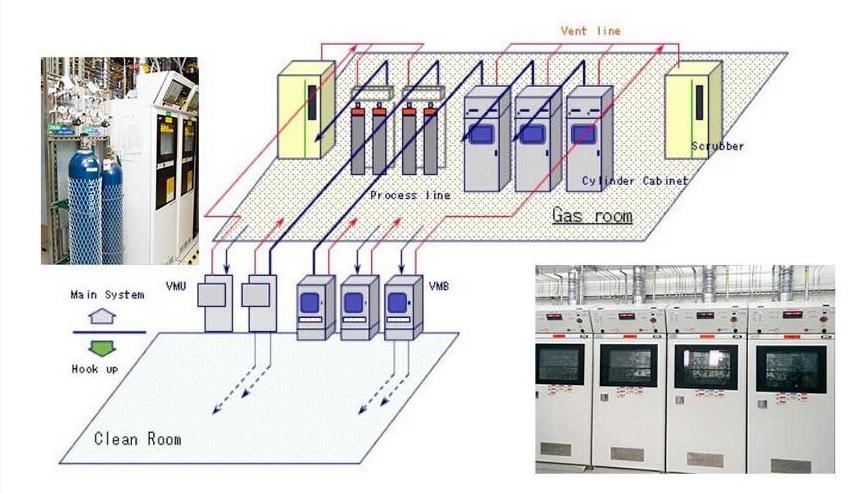 1.對于不同特性的氣體,要規(guī)劃獨立的供應(yīng)區(qū)域,一般分為三個區(qū):腐蝕性/毒性氣體區(qū)、可燃性氣體區(qū)、惰性氣體區(qū),將相同性質(zhì)的氣體集中加強管理,可燃性氣體區(qū)要特別規(guī)劃防爆墻與泄漏口,若空間不足,可考慮將惰性氣體放置與毒性/腐蝕性氣體區(qū)。