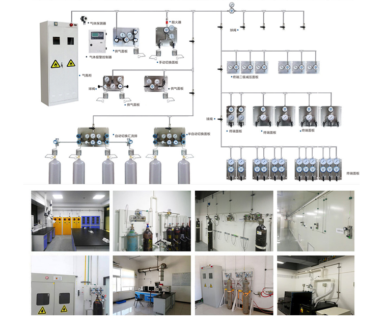 實(shí)驗(yàn)室中央供氣系統(tǒng),是現(xiàn)在一種普遍被采用的供氣方式,它主要是由氣源,切換裝置,調(diào)壓裝置,終端用氣點(diǎn),監(jiān)控及報(bào)警裝置組成。簡單來說,實(shí)驗(yàn)室集中供氣系統(tǒng)就是將所有氣瓶集中存放在氣瓶房,通過氣瓶減壓閥將氣體輸送到各個(gè)實(shí)驗(yàn)室(即儀器端)的系統(tǒng)。
