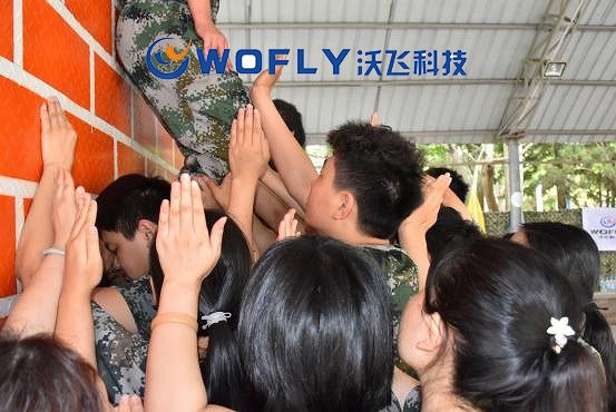 團(tuán)建的壓軸項(xiàng)目是翻越一面4.3米高的“畢業(yè)墻”,無(wú)任何輔助道具,無(wú)任何外力幫助,只憑借單槍匹馬,是不可能爬上去的,想要過(guò)去的唯一途徑依靠于沃飛30人的團(tuán)隊(duì)力量。在這個(gè)過(guò)程中,沃飛團(tuán)隊(duì)就像一個(gè)大家庭,無(wú)論男生女生,都貢獻(xiàn)著自己的力量,搭建人梯、群力托舉,伙伴們有力的肩膀,一雙雙托舉的手,一張張憋足了勁而漲紅的臉,每個(gè)人都在借助身邊人的力量向上爬,也在拼盡全力幫助其他小伙伴登上墻頂。