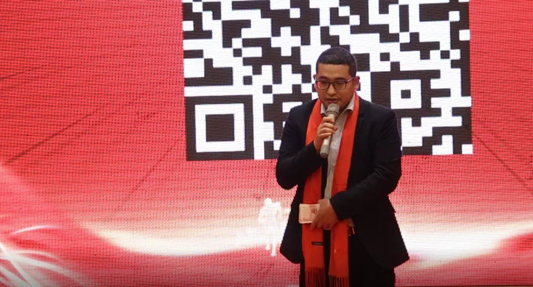 2021年在業(yè)務(wù)部同事的共同努力下,不但完成了年初預(yù)定的銷售目標,更是在這基礎(chǔ)上翻了一番,何志飛總經(jīng)理代表業(yè)務(wù)部發(fā)表了講話,更準備了豐厚的獎金,內(nèi)貿(mào)經(jīng)理劉明上臺領(lǐng)取現(xiàn)金紅包,并代表銷售部發(fā)表了2022年必勝的信心。