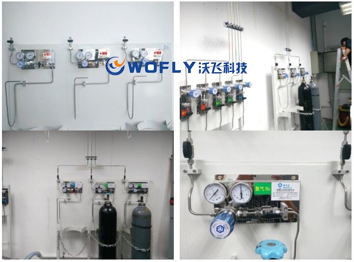 此外,沃飛科技根據(jù)實驗室環(huán)境,配合施工方協(xié)作設計方案。眾所周知,管路管線交錯供氣錯綜復雜,為避免錯漏,公司設計人員將每一路氣體的交叉點、控制閥都在圖紙上注明,通過實地勘察,進行全面、系統(tǒng)地調查分析,為氣路設計提供細致、可靠數(shù)據(jù)。同時在氣站建設方面,使用氣瓶間管理方式,提高氣站使用的安全性,氣源控制采用不銹鋼控制面板,輸送過程管路連接采用不銹鋼系列閥門、接頭等產品。