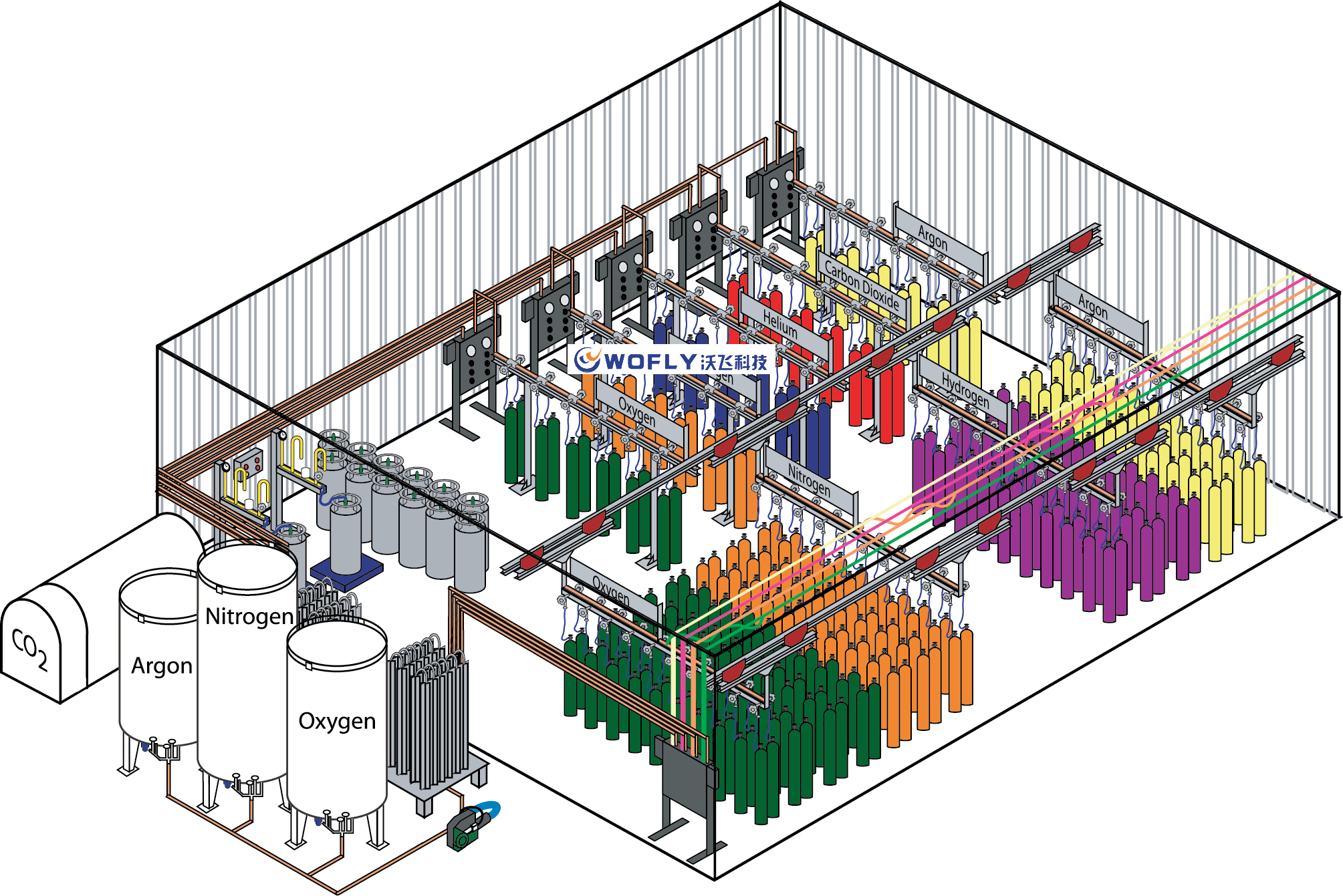 氣體充裝系統(tǒng)詳細(xì)講解。工業(yè)氣體按組份可分為單一品種氣體的工業(yè)純氣和二元或多元氣體的工業(yè)混合氣。國家標(biāo)準(zhǔn)《瓶裝壓縮氣體分類》(GB16163-1996)中,根據(jù)工業(yè)純氣在氣瓶內(nèi)的物理狀態(tài)和臨界溫度進(jìn)行分類,并按其化學(xué)性能,燃燒性、毒性、腐蝕性進(jìn)行分組。第1類為永久氣體,其臨界溫度〈-10℃,在充裝時以及在允許的工作溫度下儲運(yùn)和使用過程中均為氣態(tài),分為a、b兩組:a組為不燃無毒和不燃有毒氣體(包括氧、 氮、氬等),b組為可燃無毒和可燃有毒氣體(包括氫等)。第2 類為液化氣體,其臨界溫度≥-10℃, 包括高壓液化氣體和低壓液化氣體。其中,高壓液化氣體臨界溫度≥-10℃、且≤70℃,在充裝時為液態(tài),但在允許的工作溫度下儲運(yùn)和使用過程中隨著溫度升高至臨界溫度時即蒸發(fā)為氣態(tài),分為a、b、c 三組:a組為不燃無毒和不燃有毒氣體(包括二氧化碳);b組為可燃無毒和自燃有毒氣體;c 組為易分解或聚合的可燃?xì)怏w。低壓液化氣體臨界溫度〉70℃,在充裝時以及在允許的工作溫度下儲運(yùn)和使用過程中均為液態(tài),也分為a、b、c三組:a組為不燃無毒和不燃有毒及酸性腐蝕氣體(包括氯);b 組為可燃無毒和可燃有毒及堿性腐蝕氣體(包括氨); c 組為易分解或聚合的可燃?xì)怏w。第3類為溶解乙炔, 在壓力下溶解于氣瓶內(nèi)溶劑的氣體,僅有a組:易分解或聚合的可燃?xì)怏w(包括乙炔)。此分類是混合氣配制的基礎(chǔ)。