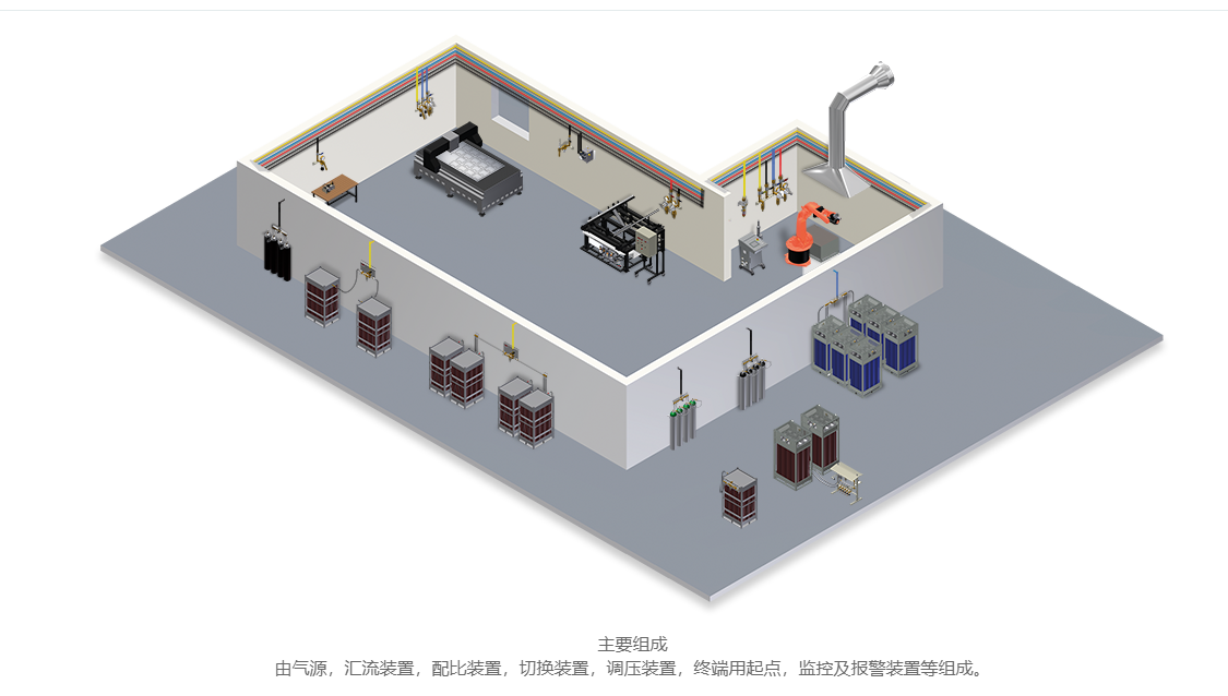 氣源集中管理:將鋼瓶等氣源放置在工作區(qū)外的安全區(qū)域,減少高壓設(shè)備及潛在危險,避免有毒或可燃?xì)怏w泄漏風(fēng)險。