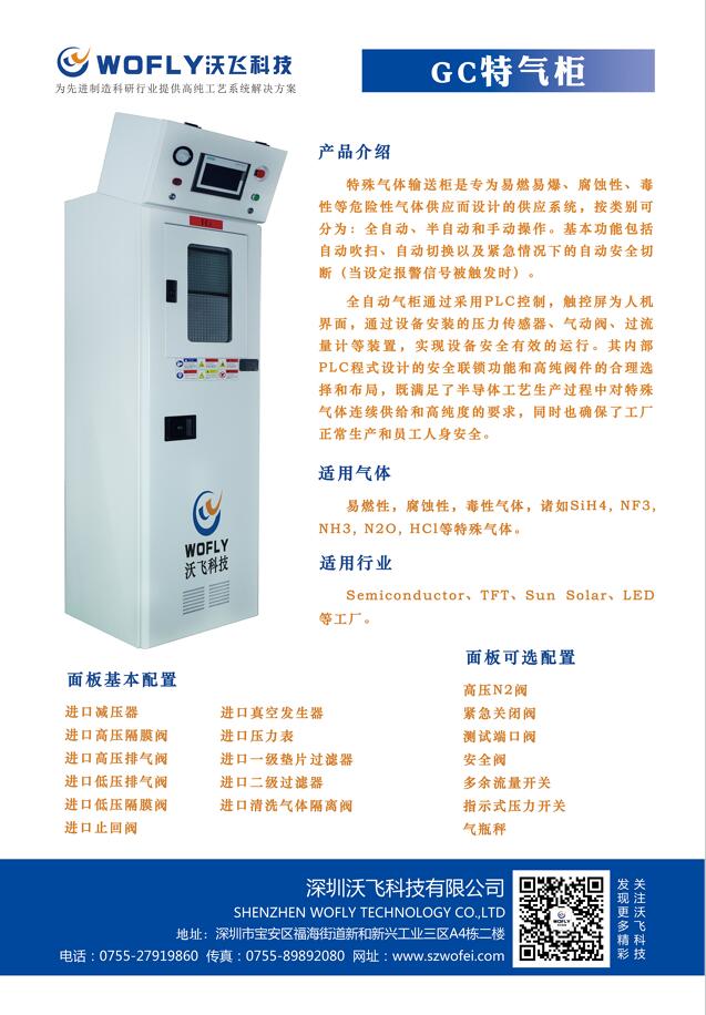 深圳沃飛科技有限公司自主研發(fā)生產(chǎn)的特氣柜可以根據(jù)客戶的氣體使用需求來進行客需定制,詳情請致電:0755-27919860