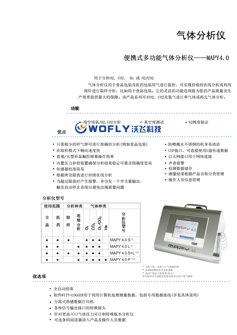 全自動(dòng)校準(zhǔn)軟件WITT-LOGGER用于利用計(jì)算機(jī)處理測量數(shù)據(jù),包括專用數(shù)據(jù)接線(詳見具體說明)分離式熱感數(shù)據(jù)打印機(jī)各種信號(hào)輸出接口的轉(zhuǎn)換接頭針對更高入口氣體壓力可訂制特殊版本分析儀便攜式多功能氣體分析儀——MAPY4.0