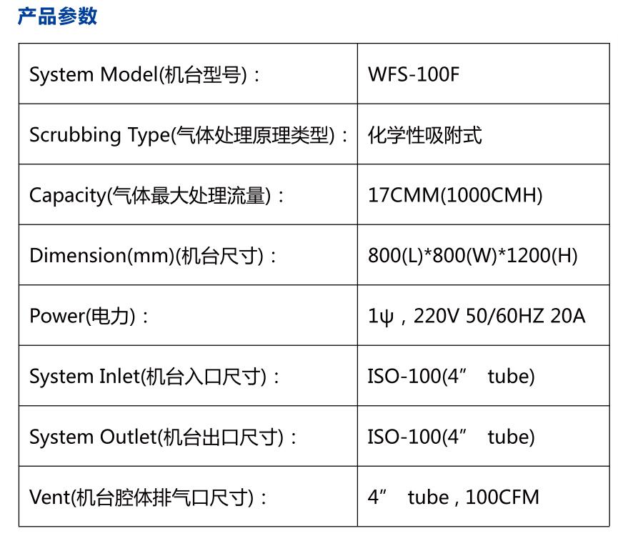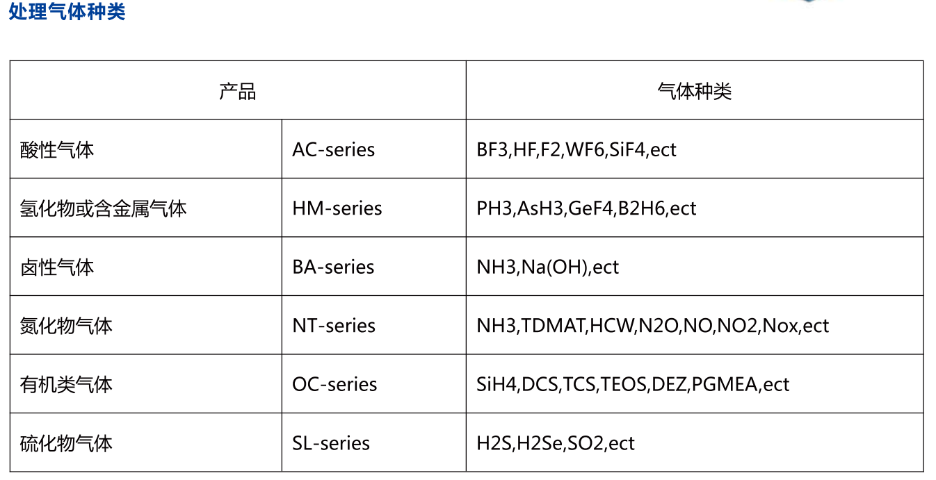 WFS-100F吸附式local scrubber 尾氣處理設備可處理氣體種類包括半導體、液晶以及太陽能等行業(yè)中蝕刻制程與化學氣相沉積制程中使用的特氣,主要包括SiH4、SiH2Cl2、PH3、B2H6、TEOS、H2、CO、NF3、SF6、C2F6、WF6、NH3、N2O等。